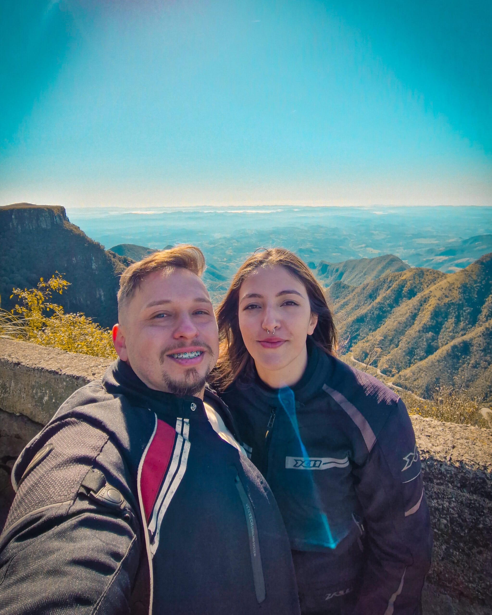 Anedota de Viagem: No mirante principal, encontramos um casal de São Paulo, na faixa dos 50 anos, com uma imponente BMW F 800 GS. Eles viajaram a noite toda e exalavam a pura essência da irmandade estradeira. Trocamos histórias e dicas, e mais tarde, os reencontramos no Mirante 12, já se despedindo a caminho de Porto Alegre. Uma breve conversa e a certeza de que a paixão por duas rodas não tem idade nem fronteiras.